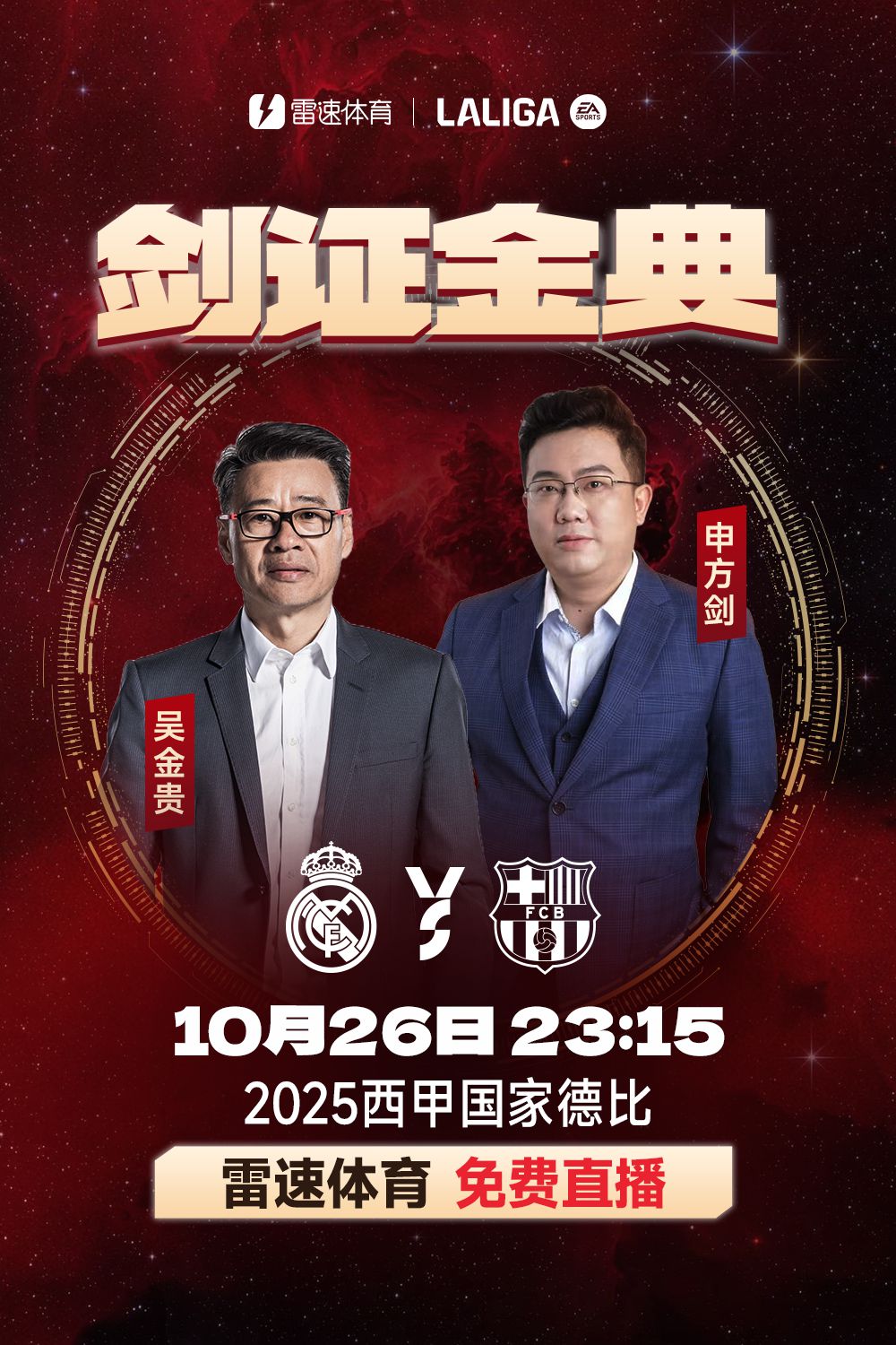 北京时间10月26日23:15,西甲第10轮,皇家马德里将在主队场迎战巴塞罗那,这将是本赛季首次西班牙国家德比。 6686体育将免费视频直播这场焦点对决,并非常荣幸地邀请到了两位特殊嘉宾担任本场竞赛的解说,分别为知名教练员吴金贵以及著名解说员申方剑。