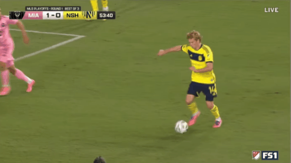 11’沙菲尔伯格运用迈阿密后防差错形成单刀,但打门时却摔倒
