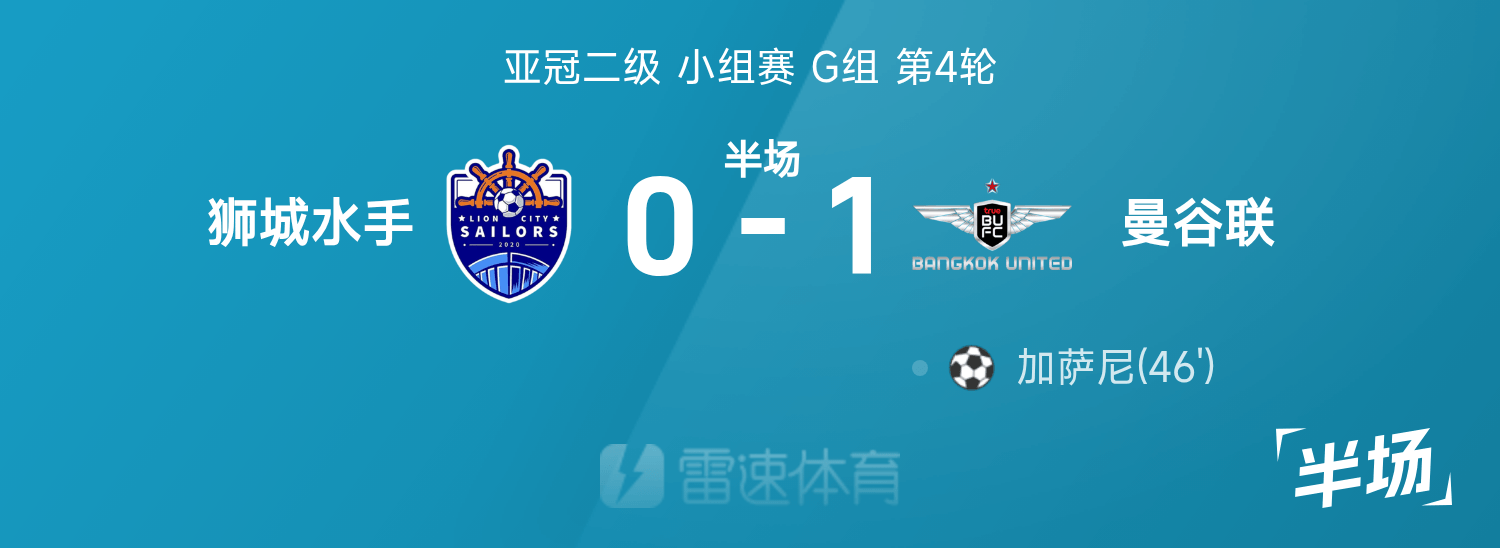 亚冠二级半场:加萨尼补时破门,狮城水手暂0-1曼谷联