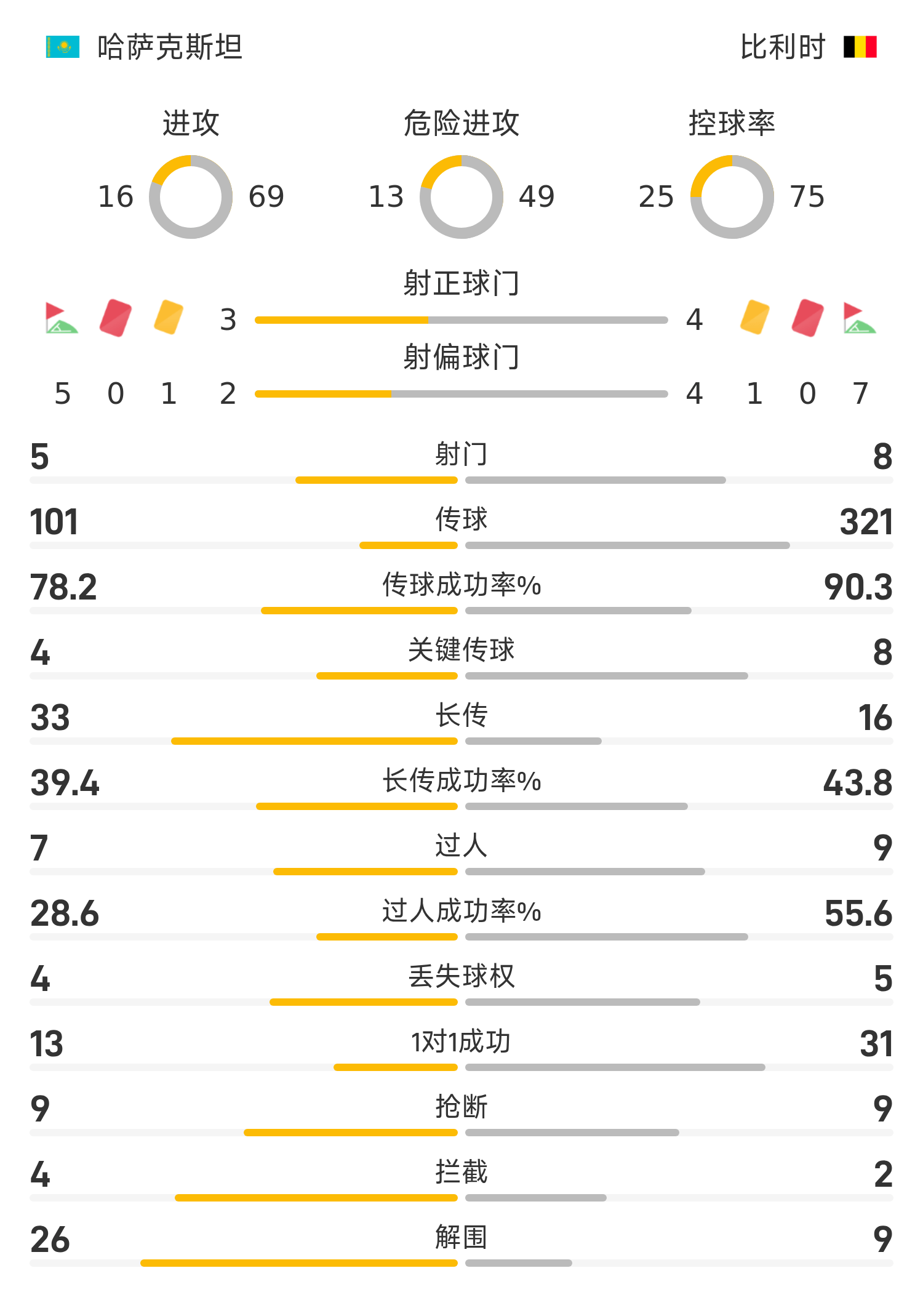 世欧预半场:萨特佩夫建功,哈萨克斯坦暂1-0比利时