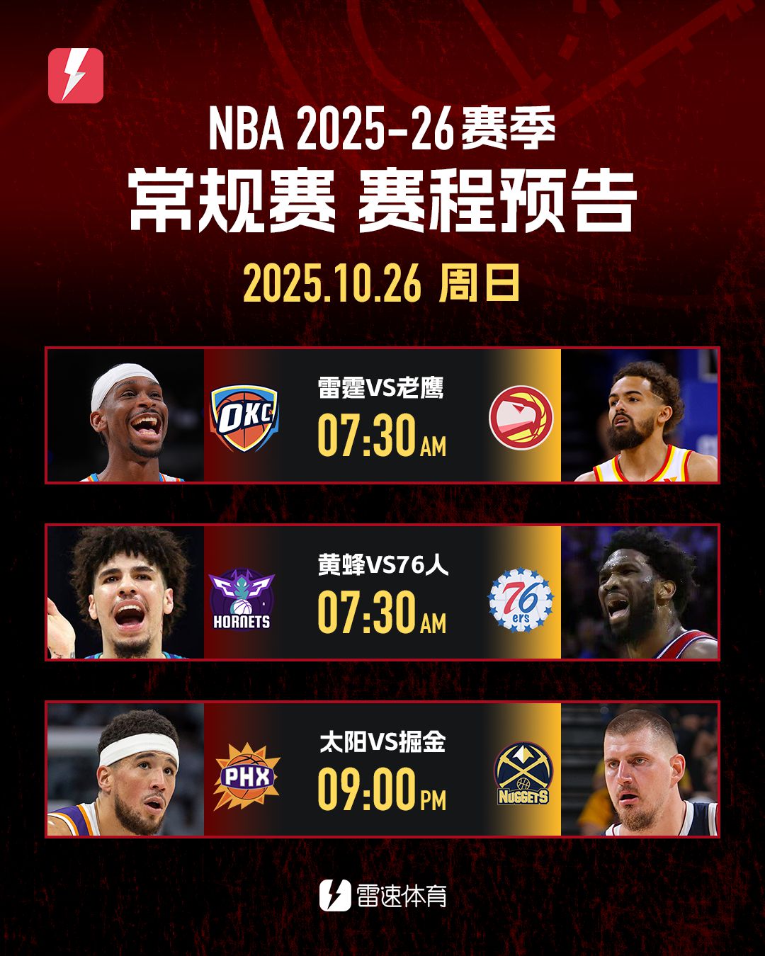 明日NBA看点:SGA、约基奇齐出战,恩比德盼一扫阴霾