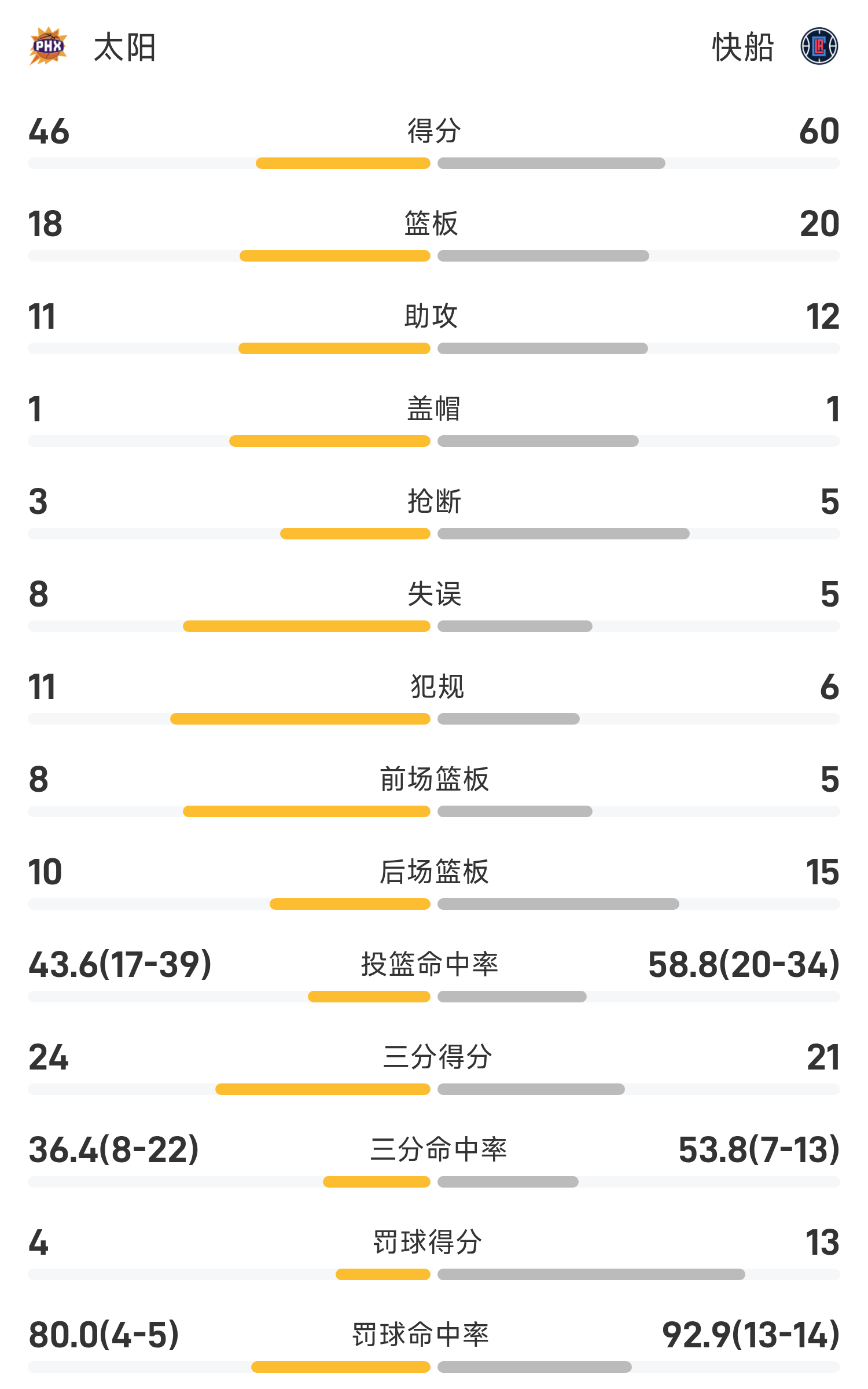 哈登三分球6投5中高效轰下26分3板4助攻,布克仅得8分,快船半场72-56太阳
