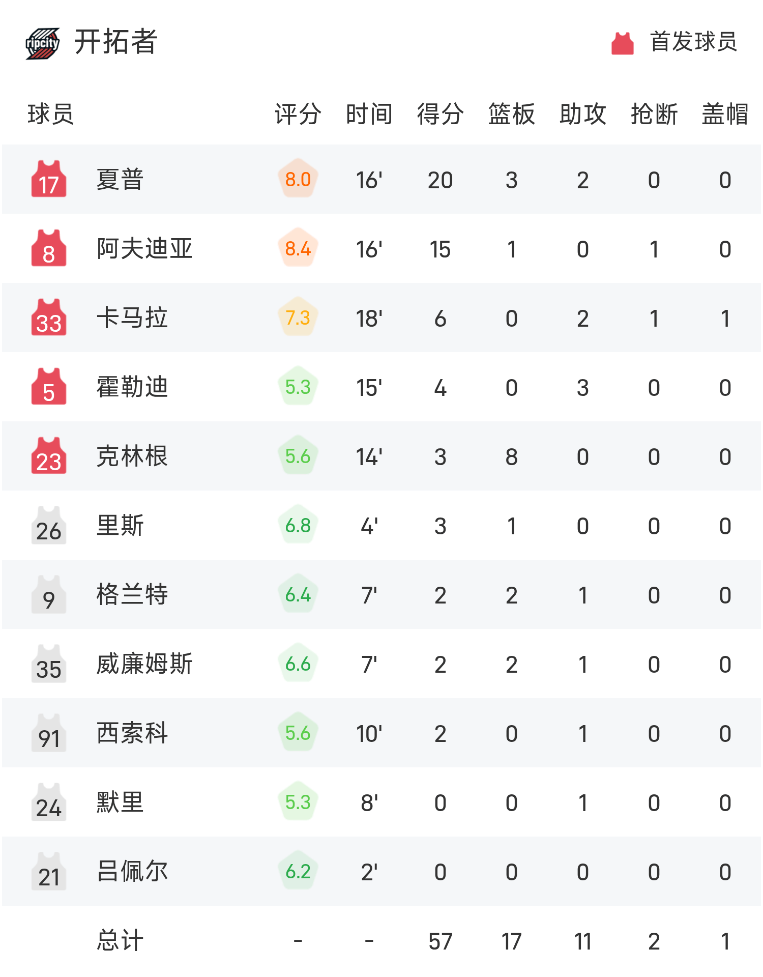 NBA半场:奎因16+6,杨瀚森暂未登场,开拓者57-59鹈鹕