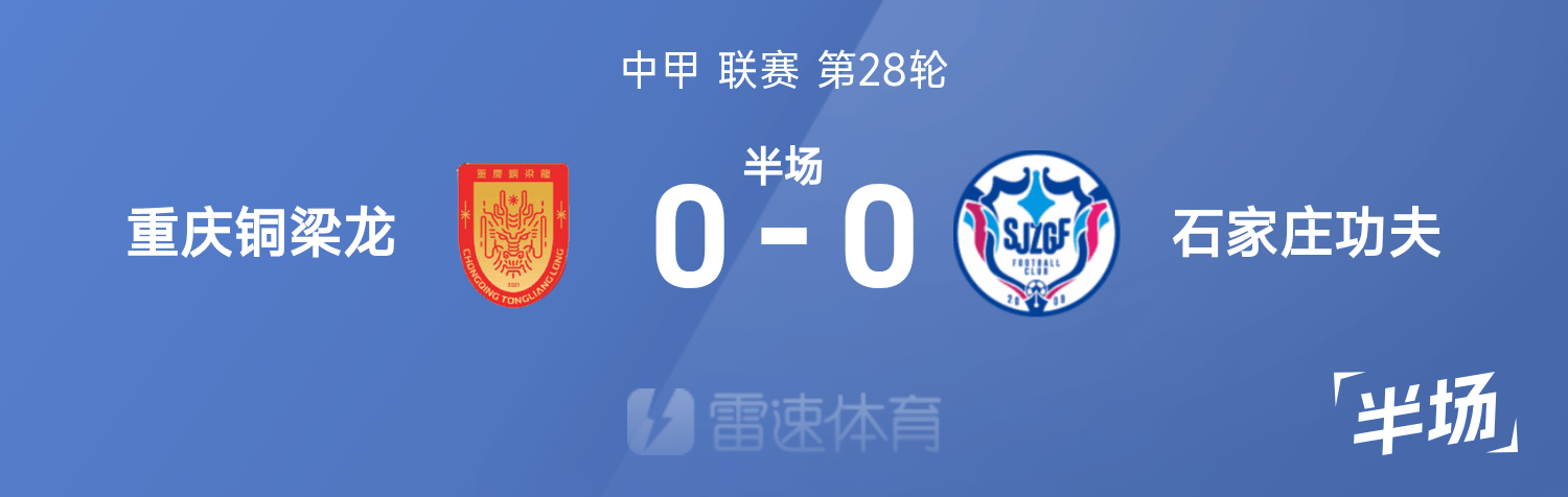 6686体育10月26日讯 25赛季中甲联赛事第28轮,重庆铜梁龙迎战石家庄功夫。半场战罢,双方赛果分暂为重庆铜梁龙0-0石家庄功夫。