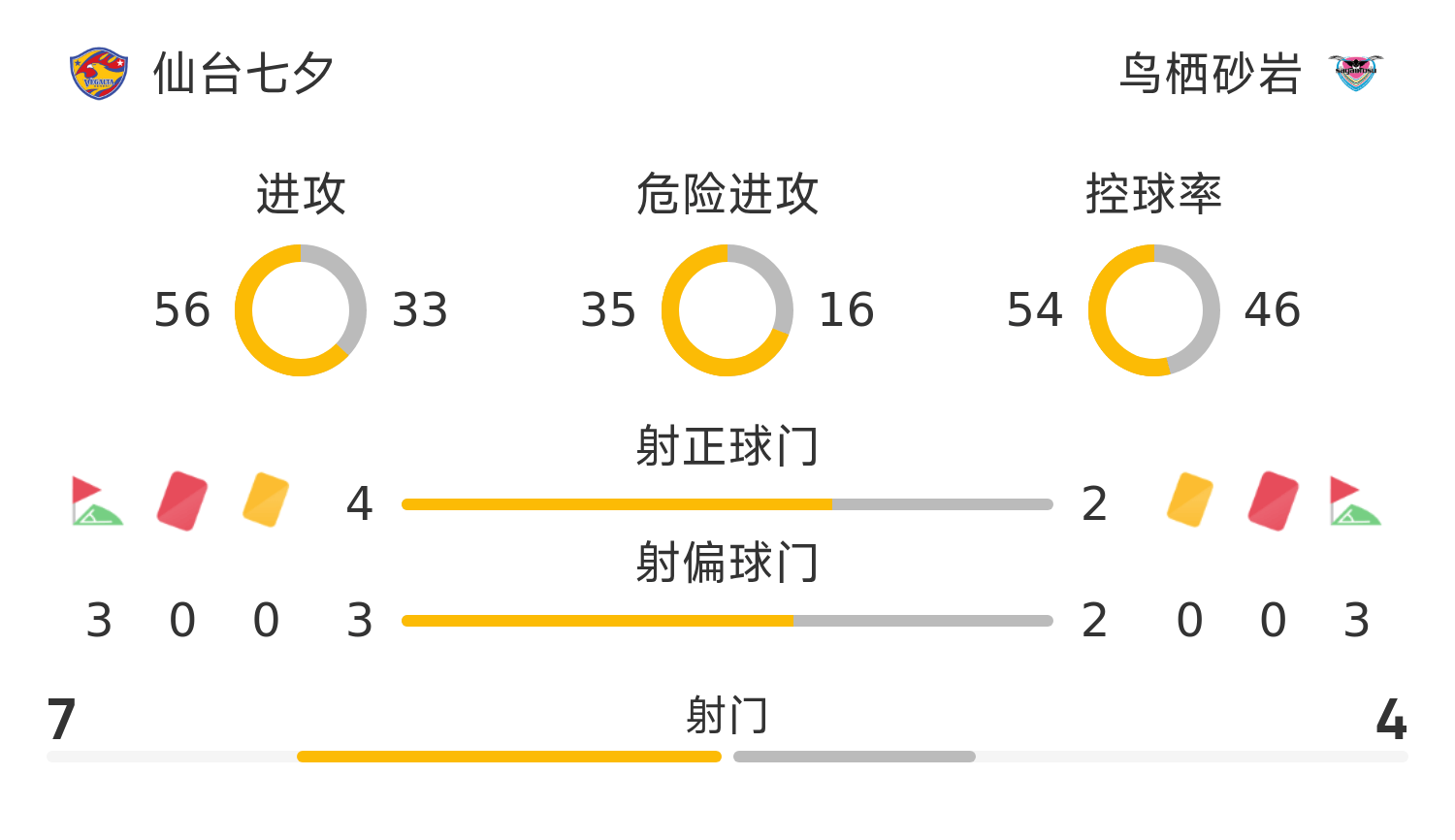日职乙半场:西川润点射建功,鸟栖砂岩暂1-0仙台七夕