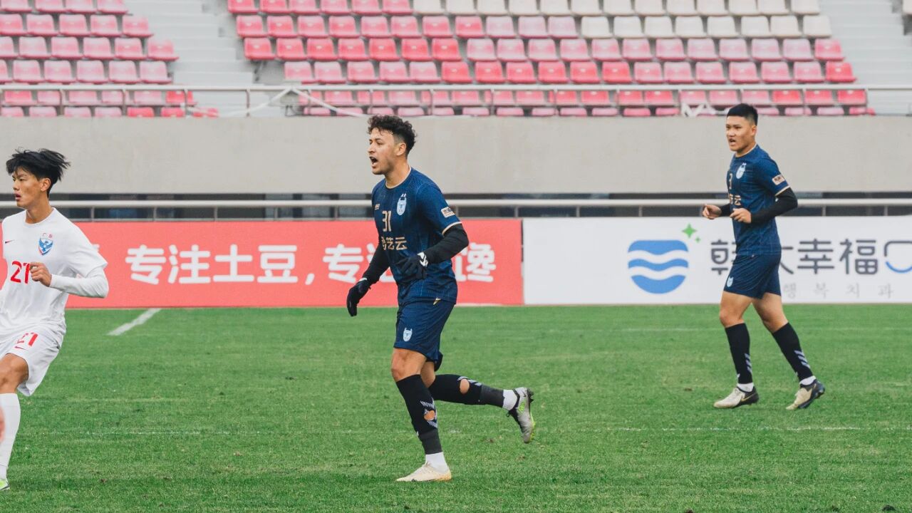 34分钟,于泽源突破至端线附近倒三角传接,张达驰跟进将球打进! 1-1!