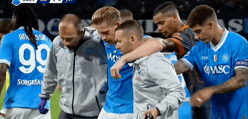 6686体育10月26日讯 尽管在本轮意甲中那不勒斯3-1击败国米,取得一场重要胜出局,但球队的受伤病潮仍在持续,最新一位倒下的球员是比利时中场德布劳内。他在那不勒斯对阵国际米兰的竞赛第33分钟,因右腿腘绳肌伤势被迫含泪离场,而就在此前,他刚刚亲自主罚命中一粒十二码,协助球队取得领跑位。