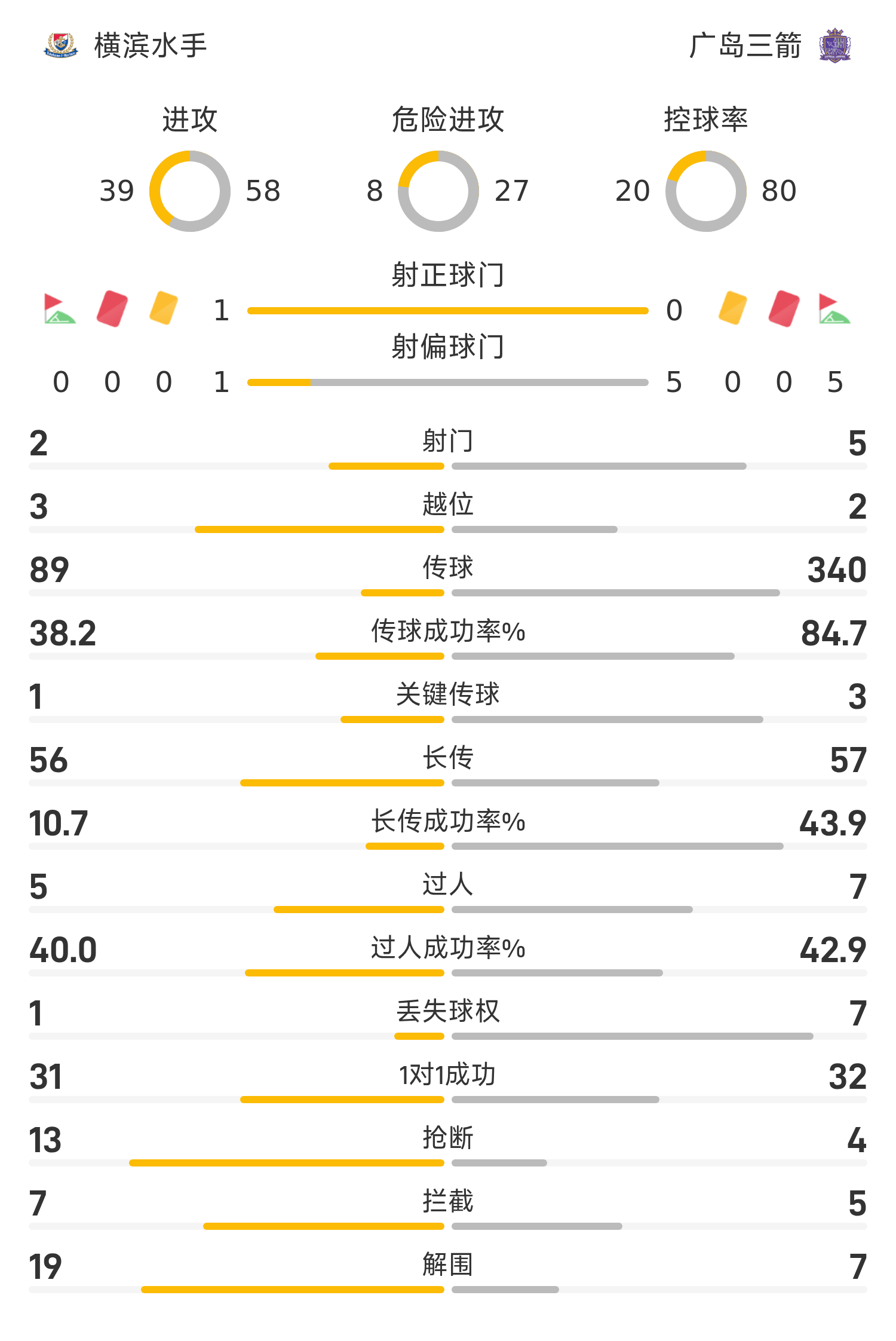 横滨水手首发阵容:19-朴一圭、25-铃木冬一、22-角田凉太朗、16-加藤莲、13-基尼奥内斯、37-克鲁克斯、8-喜田拓也、17-井上健太、14-植中朝日、45-克洛德、48-谷村海那