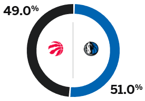 五五开! ESPN预测:独行侠胜率为51%,猛龙胜率为49%