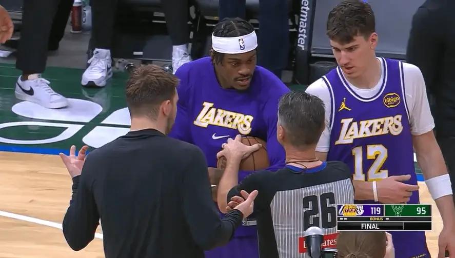 6686体育11月16日讯 今日湖人119-95击败雄鹿,赛后发生了一个小插曲,湖人前锋范德比尔特等人想要将竞赛用球献给得到NBA生涯首分的新队员蒂耶罗,却遭到26号主裁判法拉赫的拒绝,双方发生小冲突,最终裁判员还是收回了竞赛用球,但之后雄鹿核心字母哥闻讯此事将球拿下给到了湖人众将,此事才算平息。